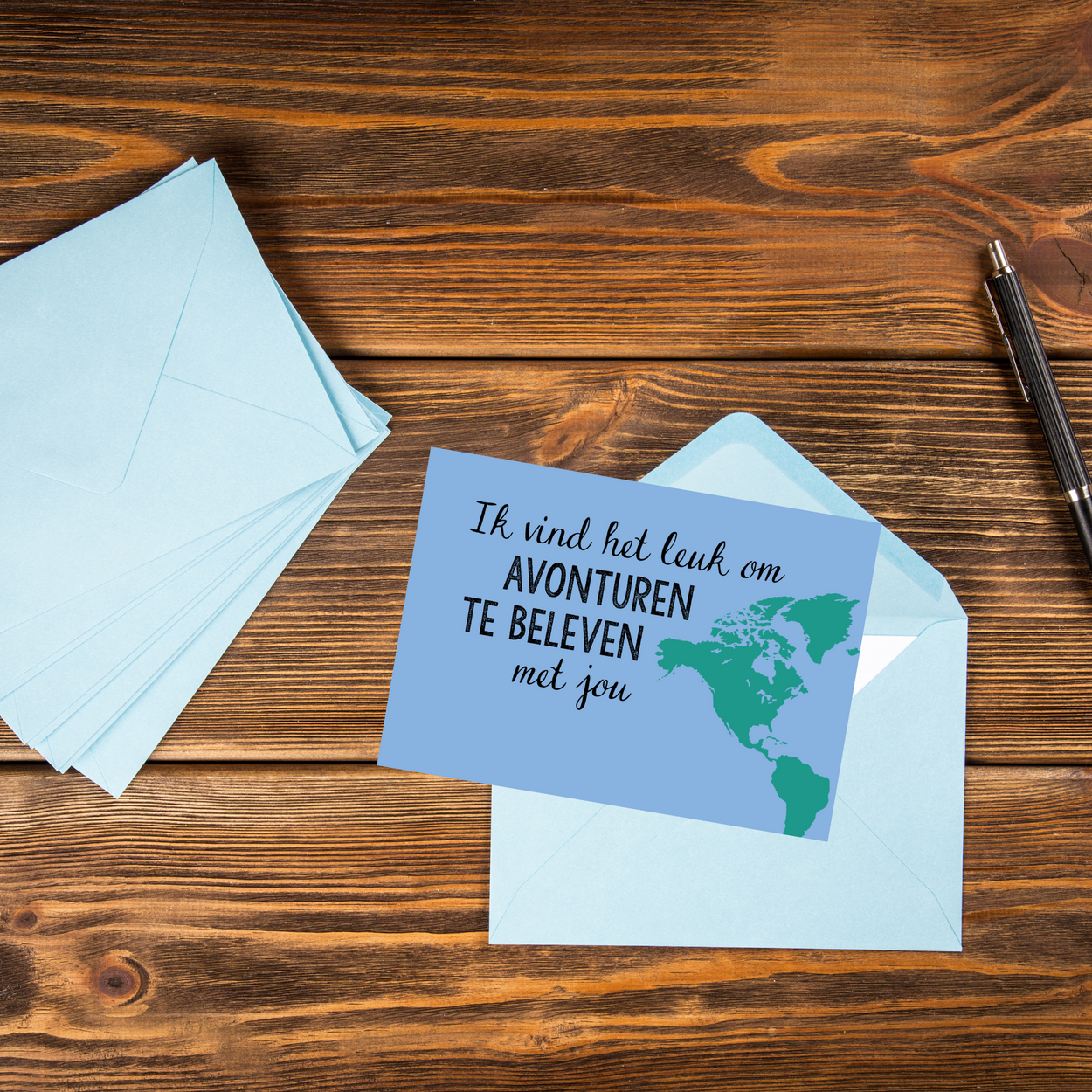 Ansichtkaart "Ik vind het leuk om avonturen te beleven met jou"