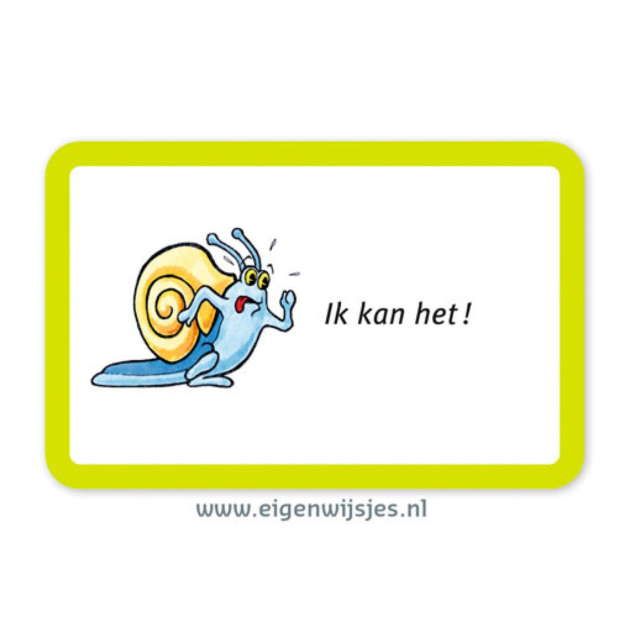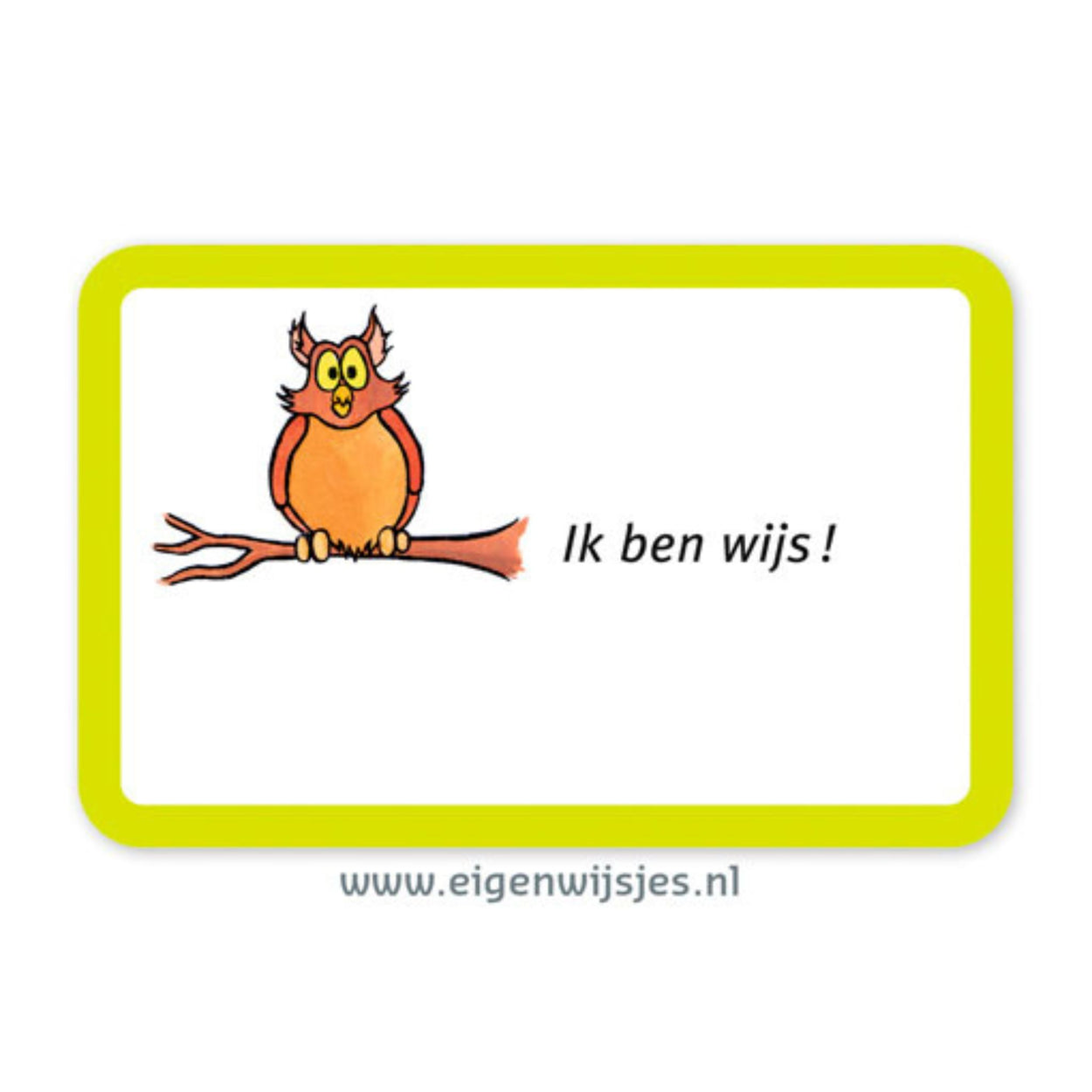Op ieder EigenWijsje staat een positieve korte krachtige zin met een bijpassend ondersteunend plaatje. Eigenwijsjes vergroten je zelfvertrouwen en helpen je om positief te leren denken.
