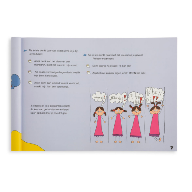In het boek 'Gedachte-Kracht' vind je de antwoorden. In het boek vertelt Yessie hoe jij je gedachte-kracht kunt gebruiken om vrolijker te worden en om rustiger te worden in je hoofd.