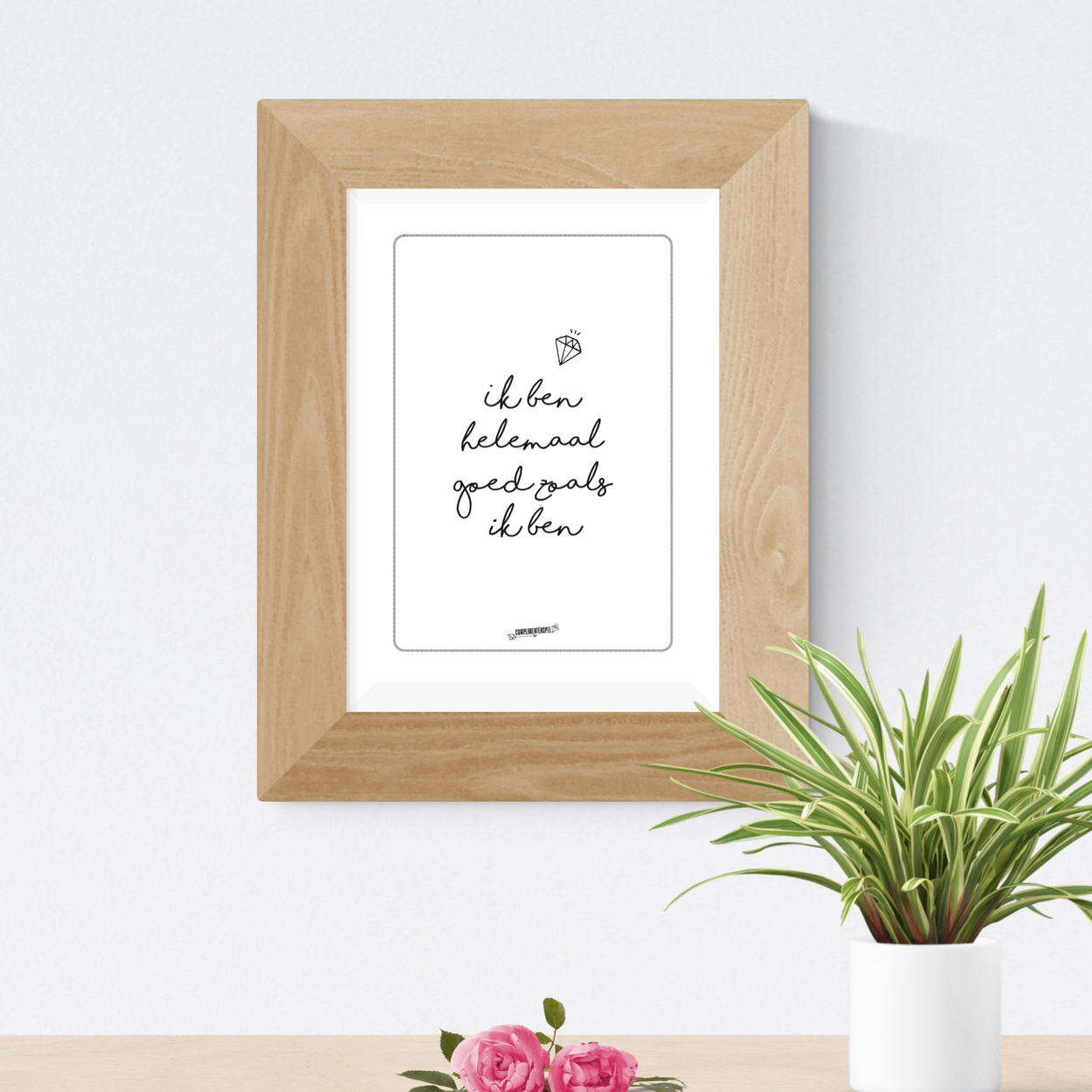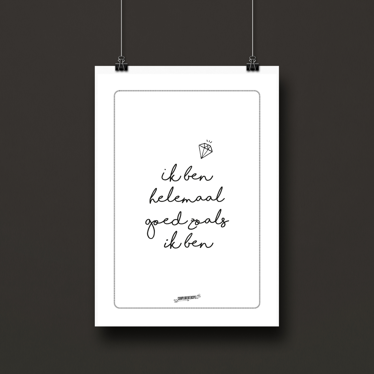 Poster met de tekst "Ik ben helemaal goed zoals ik ben"